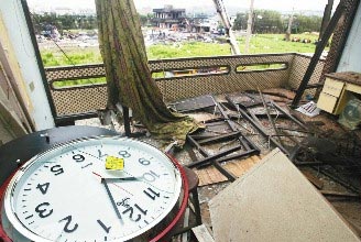 苗栗縣后龍鎮地下爆竹廠昨天爆炸,工廠60米外的一戶民宅,屋頂門窗全毀,屋內時鐘還停留在爆炸發生時的10時3分!堵摵蠄蟆酚浾哧愐壮綌z