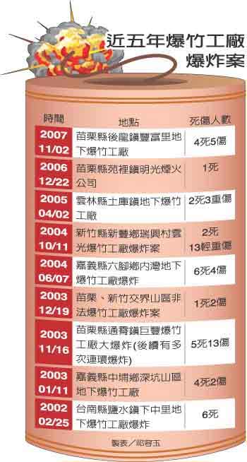 臺灣地區近五年爆竹工廠爆炸案 《聯合報》圖