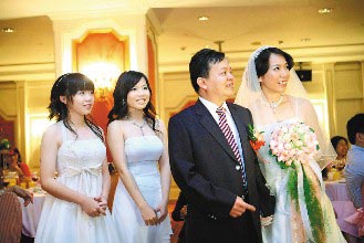當天晚間6時許,賓客都到齊了,莊曜禮牽著劉秀苓的手入場,劉秀苓愣了半晌,“怎么女兒和朋友、同學也都來了”?這時全場響起掌聲,大屏幕上播放她和丈夫莊曜禮的老照片及同學的祝福,這才知道,自己是這場婚禮的女主角,又驚又喜。飛奔回房,換上白紗禮服,再度踏著結婚進行曲出場。