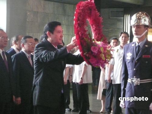 二十一日上午九點四十五分,中國國民黨主席吳伯雄率領(lǐng)黨團(tuán)要員至孫逸仙紀(jì)念館,向?qū)O中山先生的銅像獻(xiàn)花、三鞠躬。