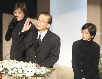 BMW代理商泛德集團爆發爭產風波。五年前,集團創辦人唐誠追思音樂會上,他的長子唐榮椿(中)、長女唐如萱(右)與次女唐慕蓮(左)細數父親生平事跡。圖片來源:聯合報