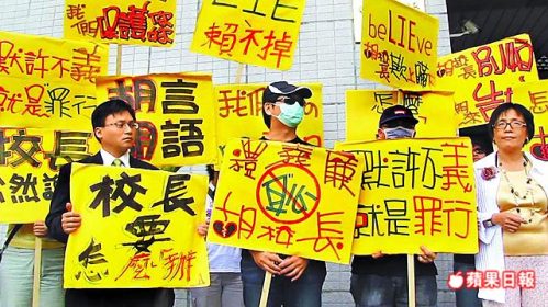 臺中市教育處副處長葉俊杰表示:“胡校長已被小過一次,罰鍰三萬元,調到他校!币幻缓δ型赣H昨怒罵:“從A校調到B校當校長,這叫行政處罰嗎?”(中國臺灣網 高大林)