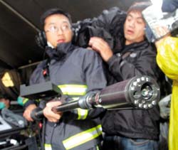 臺灣三號高速公路滑坡,臺軍昨上午出動“影像式生命探側儀”到現場待命。圖片來源:臺灣《聯合報》
