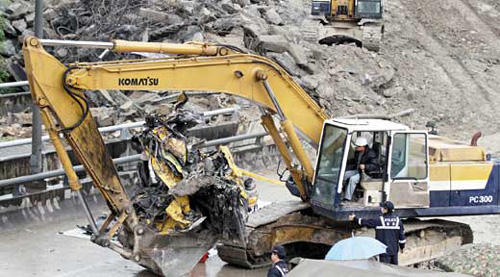 臺(tái)灣三號(hào)高速公路七堵段25日下午發(fā)生山體滑坡意外,震驚社會(huì)。包括臺(tái)當(dāng)局“交通部”、“高速公路局”、臺(tái)軍方等相關(guān)單位連日來(lái)動(dòng)員大批人力日夜搶救,從昨天中午發(fā)現(xiàn)一件黑色奔馳車(chē)車(chē)牌后,到今天凌晨已陸續(xù)挖出兩輛車(chē)、四具遺體。