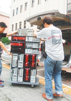臺警方、檢方掃蕩島內最大簽賭網站,同步搜索140個簽賭據點,查扣數百組計算機機臺,得用推車搬運。 來源:臺灣《聯合報》