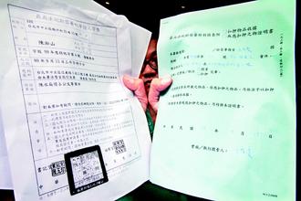 檢調(diào)搜索臺北市臨沂街的陳水扁辦公室,查扣大批公文,扁辦主任陳淞山出示臺“高檢署”約談及特偵組扣押物品收據(jù)。 來源:臺灣《聯(lián)合報》