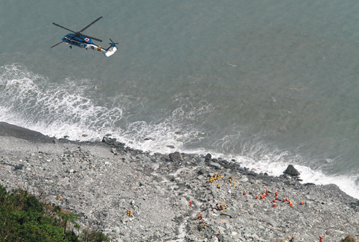 綜合報道,在臺灣蘇花公路上尋找失蹤人車的搜救工作今日進入第六天,今日搜救作業將鎖定三個重點區域,并將出動重型機具,加快搜救進度。另外,由于昨天有疑似罹難者遺體在宜蘭外海被發現,今日海域搜尋范圍也將擴大。