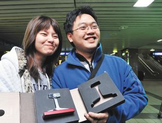 2011年情人節,臺鐵推出500組刻上甜言蜜語的“鐵不出軌”愛情文鎮。圖片來源:臺灣《聯合報》