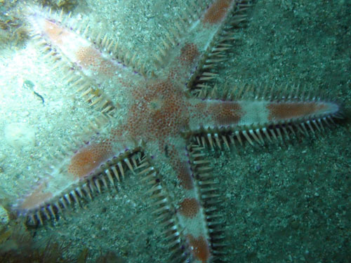 據臺灣《蘋果日報》網站報道,臺灣墾丁公園管理處研究人員日前進行海底夜間調查時,在核三廠出水口附近水深9米處,發現一只體色接近暗紅褐色的海星,經公立自然科學博物館趙世民博士鑒定,為臺灣海域不常見的物種“多棘槭海星”。