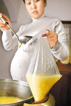臺灣孕婦體內(nèi)塑化劑是美國人的10倍以上,可能殘害嬰兒,用塑料袋裝熱食會受塑化劑污染。圖片來源:臺灣《中國時報》