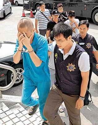 彰化警方將詐騙集團主嫌曾希哲(左一)等帶回警局偵訊。圖片來自網絡