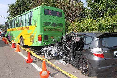 中國臺灣網(wǎng)11月5日消息 據(jù)臺灣媒體報道,今天凌晨,臺軍六軍團(tuán)一名中士周姓炮長(22歲)在卡拉OK飲酒狂歡后,駕駛一輛轎車搭載呂姓(22歲)、彭姓(23歲)等友人,行經(jīng)新竹縣竹東鎮(zhèn)工業(yè)二路上,追撞停放路旁的游覽車車尾,撞擊力道猛烈,17噸重的游覽車遭推離原位偏斜。警方封鎖現(xiàn)場調(diào)查中。
