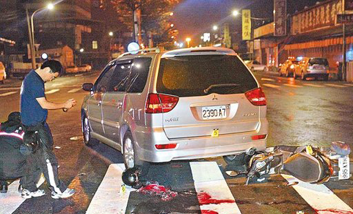 高中女生呂思穎騎摩托車追撞休旅車后七孔流血身亡,在地上留下大攤血跡。(圖片來源:臺灣媒體)