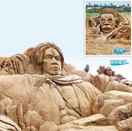 中國(guó)臺(tái)灣網(wǎng)1月8日消息 據(jù)臺(tái)灣《蘋(píng)果日?qǐng)?bào)》報(bào)道,“2012年南投貓羅溪沙雕藝術(shù)節(jié)”昨天在風(fēng)景優(yōu)美的南投市貓羅溪畔登場(chǎng),臺(tái)灣賣(mài)座電影《賽德克巴萊》、《臥虎藏龍》、《艋舺》、《海角七號(hào)》中的經(jīng)典形象被制作成大型沙雕。(中國(guó)臺(tái)灣網(wǎng) 李迪)