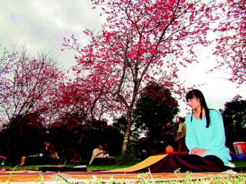 據(jù)臺灣《聯(lián)合報》報道,邁入第五年的臺灣暨南大學(xué)櫻花季登場,昨天(14日)舉辦“賞櫻茶會”,邀竹山、鹿谷、松嶺等各地茶會專業(yè)茶師,在暖陽映照的千棵櫻花園大草坪普設(shè)茶席,吸引大批當(dāng)?shù)孛癖娂巴獾赜慰凸蚕頇鸦谰昂秃貌枳涛丁?/p>