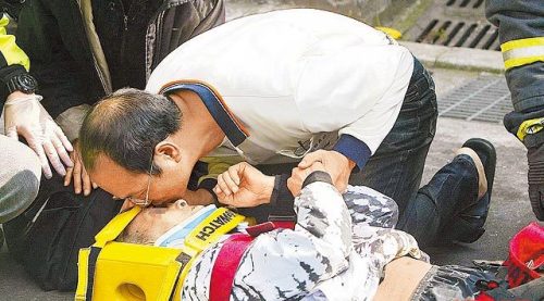 中國臺灣網(wǎng)3月31日消息 據(jù)臺灣媒體報道,新北巿一名七旬老翁疑因久病厭世,昨凌晨趁家人熟睡時,從住處14樓跳樓輕生,撞破1樓的平房屋頂,卡在洞內(nèi)當(dāng)場死亡。死者兒媳清晨發(fā)現(xiàn)父親失蹤后報警找人,接獲通知找到父親遺體,兒子難過得跪地痛哭,俯身親吻父親額頭道別,場面令人鼻酸。 (中國臺灣網(wǎng) 李迪)