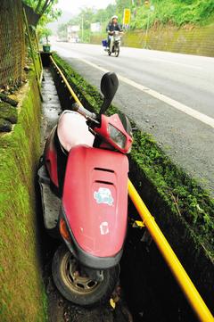 南投縣魚池鄉陳姓婦人前晚酒后騎機車摔進路旁水溝,沒想到老公也在花蓮酒駕被取締。圖片來源:臺灣《聯合報》