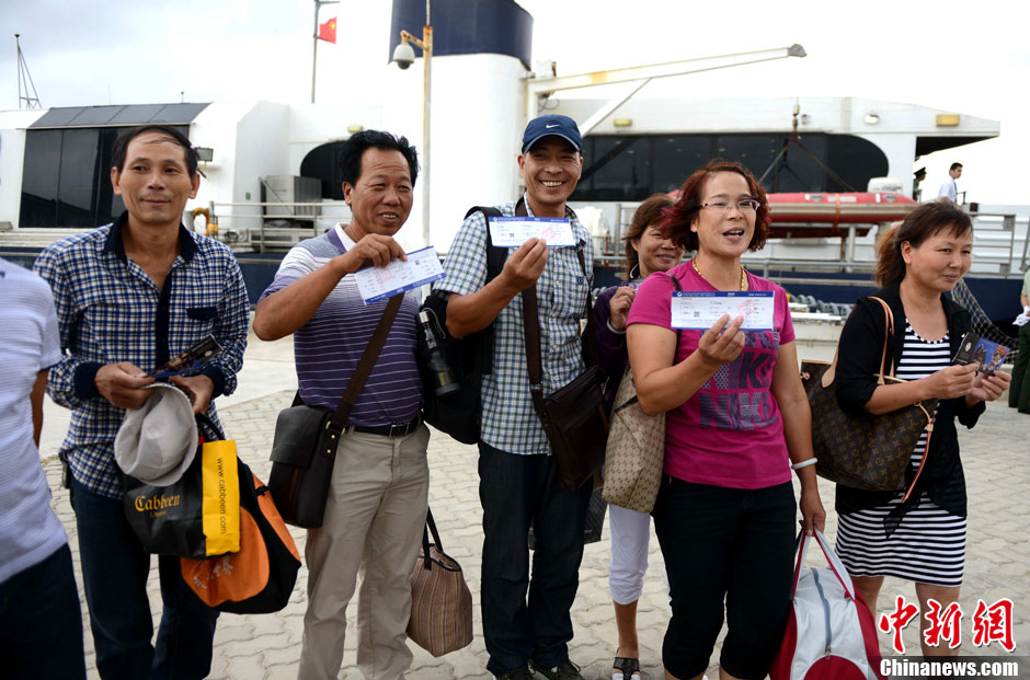 10月9日,大陸游客在福建平潭綜合實驗區(qū)海峽高速客運碼頭乘坐“海峽號”首航臺北