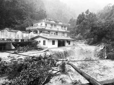 8月8日,新北市三峽多處溪水暴漲,泥石流流進一處民宅。 新華社發