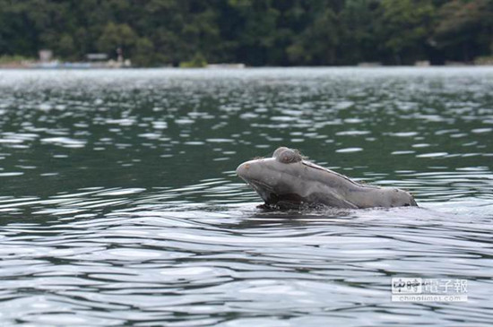 日月潭“九蛙迭像”只剩1只露臉。圖自臺灣“中時電子報”