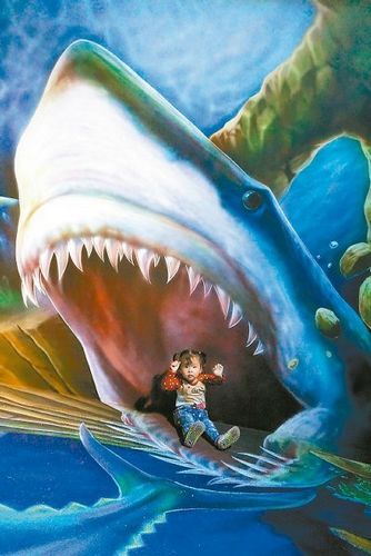 “救命!”小女孩一靠近墻上的鯊魚,擔心下一秒就要被吃掉,逼真的場景,讓她嚇得差點哭出來。