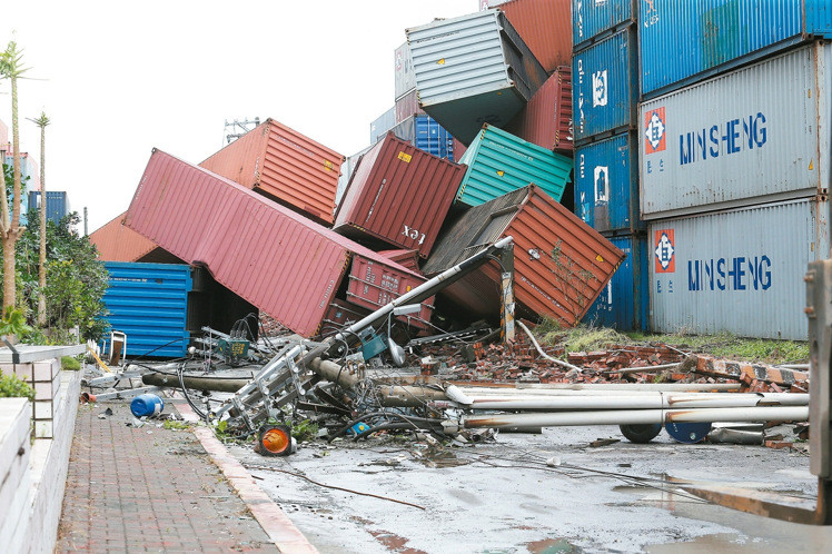 “莫蘭蒂”強(qiáng)襲,高雄港有許多貨柜被吹倒。(圖片來源:臺灣聯(lián)合新聞網(wǎng))
