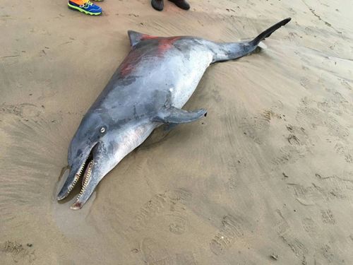 這只瓶鼻海豚體長近2公尺,背部有些許外傷,被發(fā)現(xiàn)時尚未有腐爛跡象,死亡時間可能不久。中華鯨豚協(xié)會指出,這是“梅姬”(大陸稱“鲇魚”)臺風過后,全臺第12起鯨豚擱淺死亡案例,已派人到場,會在現(xiàn)地解剖厘清死因。