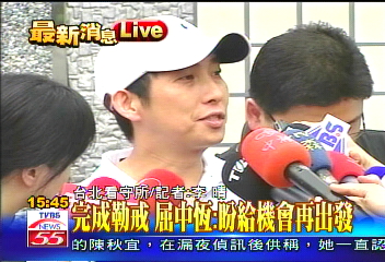 臺藝人屈中恒強制戒毒期滿 表示要改過自新