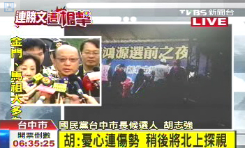胡志強擔心連勝文安危,徹夜難眠。 來源:臺灣TVBS電視臺
