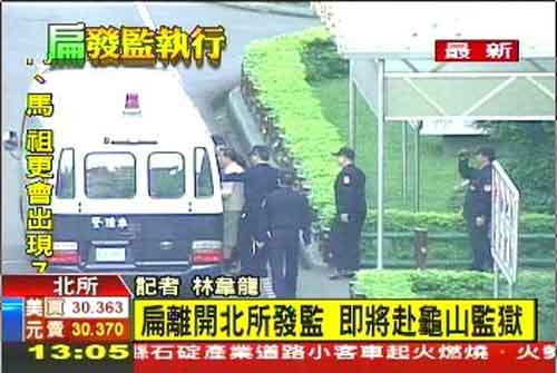 12月2日下午1時37分左右,陳水扁囚車在警方車隊戒護下抵達臺北監(jiān)獄,入監(jiān)服刑。【詳細】