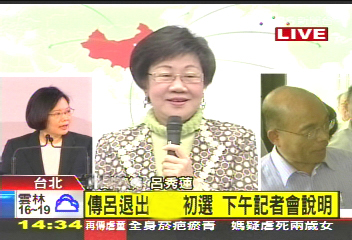 呂秀蓮宣布退選 盼民進(jìn)黨早日結(jié)束派系分贓