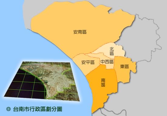 臺南市是臺灣省最早興起的歷史名城,明清曾是臺灣政治、經濟、文化中心,現在為臺灣省南部最大的一座城市。地處臺灣省西南部,東鄰臺南縣,西瀕臺灣海峽,南與高雄縣為界,北與曾文溪和臺南縣相連。市區面積175平方公里,人口77萬。