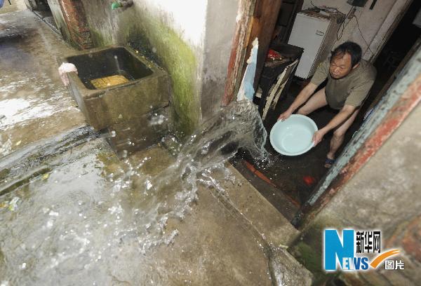 5月18日,南昌市利字街一名居民清除屋內積水。受連日暴雨影響,南昌市城區多處發生嚴重內澇。 新華社發