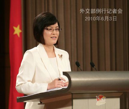 2010年6月3日,外交部發言人姜瑜舉行例行記者會。