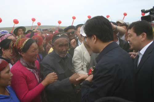 11時30分,隨著新疆維吾爾自治區(qū)黨委書記張春賢一聲令下:也拉曼水庫開工!歡歌笑語伴著鑼鼓聲、禮炮聲在山谷間回蕩……歡欣鼓舞的哈薩克牧民以隆重的“恰秀”禮儀表達內(nèi)心的喜悅。