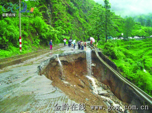 暴雨致貴州境內320國道路基塌方 交通中斷(圖)