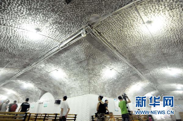 7月1日,市民在室溫22℃的杭州吳山游藝場防空洞內避暑納涼。新華社發(吳煌攝)