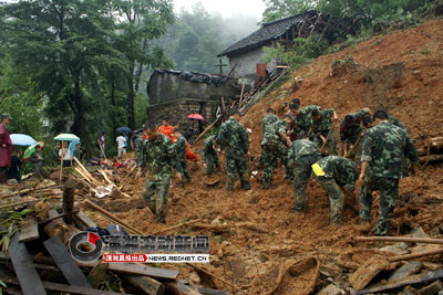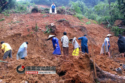 由于通往事發(fā)現(xiàn)場的道路被水沖斷,導致大型挖掘機械短時間內(nèi)無法達到現(xiàn)場,現(xiàn)場一度采用人工挖掘。12日下午3點左右,3名遇難村民被挖出。到下午5點多,當?shù)卣o急調(diào)運一臺大型挖機趕到現(xiàn)場進行挖掘。13日早上8點20分左右,另外3名遇難者遺體也被找到。