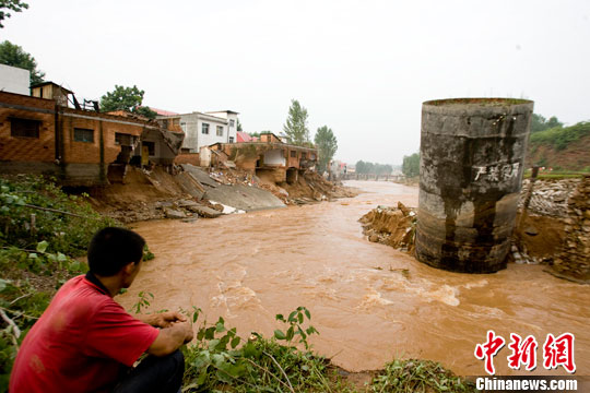 近日,河南先后遭兩場大范圍強降雨襲擊,截止7月25日11時,全省受災(zāi)人口已達362.99萬人,因災(zāi)死亡23人、失蹤12人;洪災(zāi)還造成直接經(jīng)濟失損24.06億元人民幣。圖為河南西峽縣民眾無奈的看著被大水沖壞的家園。中新社發(fā) 王中舉 攝