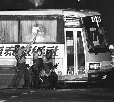 8月23日,菲律賓警察和特種部隊(duì)強(qiáng)攻客車解救被劫持人質(zhì)。人民圖片