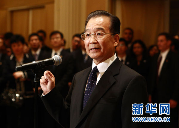 中國國務院總理溫家寶當地時間9月21日晚在紐約會見旅美華僑華人、中資機構及留學生代表時說,釣魚島是中國的神圣領土。日方最近在釣魚島海域抓扣中國漁民和漁船,至今不釋放中方船長,這是完全非法的、無理的,已經對中方船長及其家人造成嚴重傷害,并激起海內外全體中國人的憤怒。新華社記者 姚大偉攝