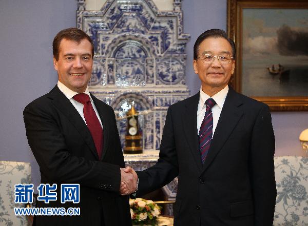 溫家寶表示,中俄戰略協作伙伴關系基礎牢固,內涵豐富,影響廣泛,潛力巨大,已成為兩國各自發展振興的戰略支撐,也為維護世界和平穩定提供了重要保障。發展對俄關系是中國外交的優先方向,中方愿同俄方一道,以明年慶祝《中俄睦鄰友好合作條約》簽署10周年為契機,不斷增進政治互信,加大相互支持,深化務實合作,擴大人文交流,推動中俄戰略協作伙伴關系長期、健康、穩定發展。