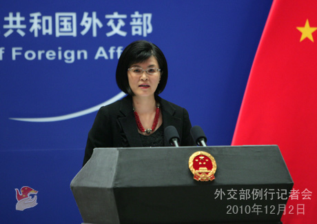 2010年12月2日,外交部發言人姜瑜主持例行記者會。