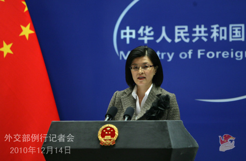 2010年12月14日,外交部發言人姜瑜主持例行記者會。
