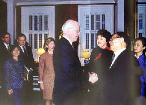 訪問期間,江澤民主席同克林頓總統就兩國關系和共同關心的世界與地區問題深入交換了意見,達成了廣泛共識。雙方發表的《中美聯合聲明》確定了中美關系未來發展的目標:為了促進世界和平與發展的崇高事業,中美應該加強合作,努力建立面向二十一世紀的建設性的戰略伙伴關系。雙方還強調,要把中美三個聯合公報作為發展兩國關系的原則基礎;要從全球和歷史的戰略高度審視和處理雙邊關系,積極尋求共同利益的匯合點;要本著相互尊重、平等協商、求同存異的精神正確處理兩國間分歧。雙方還確定了中美兩國元首定期互訪和高級官員定期磋商的機制,在北京和華盛頓之間建立元首直接通訊聯系,兩國內閣和次內閣官員定期互訪,就政治、軍事、安全和軍控問題進行磋商。