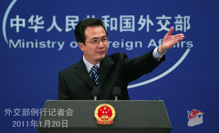 外交部發言人洪磊今日主持例行記者會,就胡錦濤主席訪美、第十二次中日安全對話等回答記者提問。
