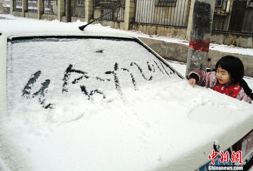2月9日下午1點30分許,占據中國四分之一糧倉的河南喜降2011年第一場雪,近一個小時大地銀裝素裹,該地區已連續三個多月未降雨雪,這場雪雖然來得比往年晚,但對農田旱情有所緩解。中新社記者 王中舉 攝