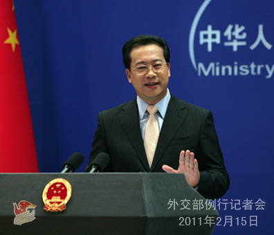 2011年2月15日,外交部發(fā)言人馬朝旭主持例行記者會(huì)。