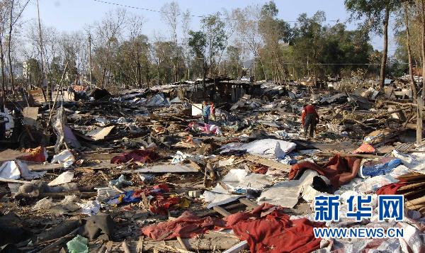 男孩兒蔡全東在自家被拆掉的房子前,這天他和父親來收拾自家一些有用的東西(2月9日攝)。 新華社記者 侯建森 攝