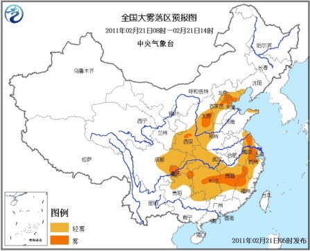 中央氣象臺2月21日06時繼續發布大霧黃色預警:預計,今天早晨到上午,華北中南部和東部、陜西中南部、西南地區東部、江漢西部和南部、江淮東部、江南大部、華南北部以及山東半島東北部等地有輕霧,其中,京津地區、山西南部、陜西中部、江蘇中部、浙江西北部和西南部、福建西北部、江西中部、湖南中部、重慶東南部和西南部、山東半島東北部等地的部分地區有能見度不足1000米的霧,局地能見度不足200米。